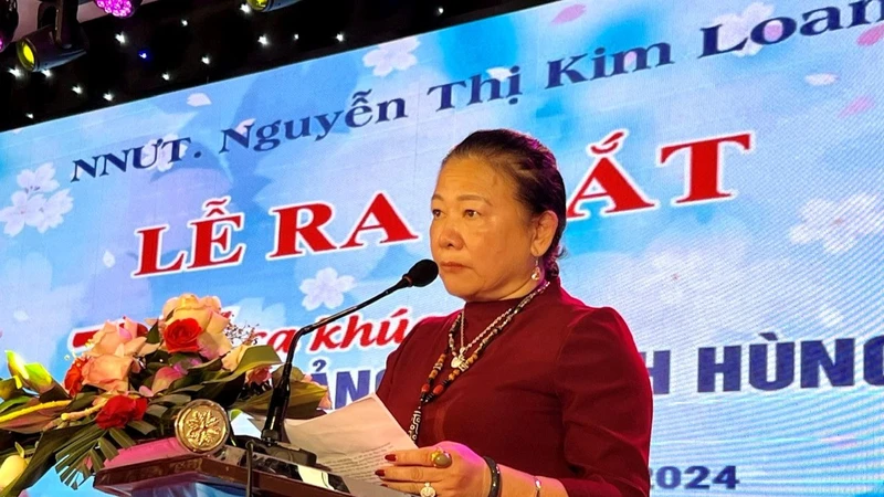 Nghệ nhân Ưu tú Nguyễn Thị Kim Loan chia sẻ tại Lễ ra mắt 15 ca khúc về Quảng Trị.