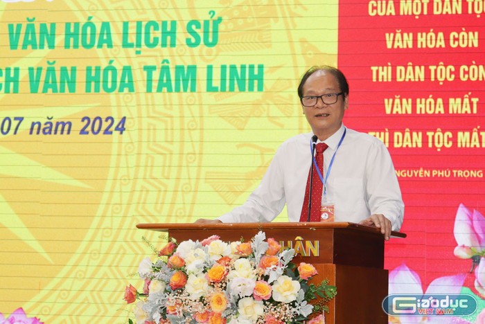 Ông Trần Văn Nam – Viện trưởng Viện phát triển Văn hóa dân tộc đọc diễn văn khai mạc diễn đàn (Ảnh: Lã Tiến)