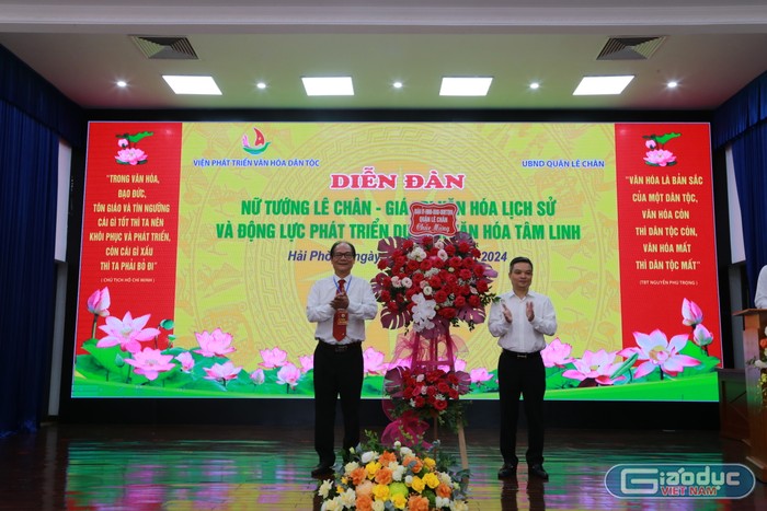 Viện Phát triển Văn hóa dân tộc phối kết hợp với chính quyền và đội ngũ các nhà quản lý văn hóa thành phố Hải Phòng, quận Lê Chân tổ chức diễn đàn: “Nữ tướng Lê Chân – Giá trị văn hóa lịch sử và động lực phát triển du lịch văn hóa tâm linh” nhằm góp phần cụ thể vào sự nghiệp bảo vệ và phát huy giá trị văn hóa của quận Lê Chân nói riêng và thành phố Hải Phòng nói chung, trong sự chấn hưng văn hóa dân tộc hiện nay”, ông Trần Văn Nam nói.