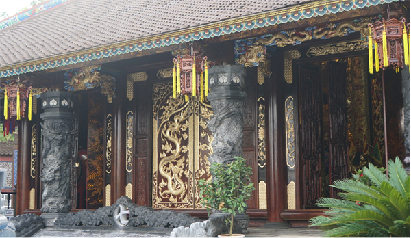 Cửa ra vào được điêu khắc thủ công linh vật Rồng thời Lý một cách tinh xảo, nhằm lưu giữ lại những nét tinh hoa thời phong kiến Việt Nam qua các thời kỳ.
