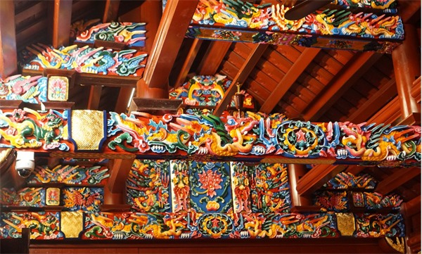 Hoành, xà, vì kèo được các nghệ nhân có tay nghề cao điêu khắc, sơn, vẽ tỉ mỉ