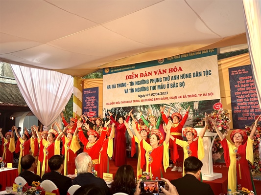 VHO- Viện Phát triển Văn hóa Dân tộc vừa phối hợp với Hội Văn nghệ Dân gian Việt Nam và Hội Văn nghệ Dân gian Hà Nội tổ chức Diễn đàn văn hóa “Hai Bà Trưng – Tín ngưỡng Phụng thờ người anh hùng dân tộc và Tín ngưỡng thờ Mẫu ở Bắc Bộ” tại Miếu thờ Hai Bà Trưng, số 680 đường Bạch Đằng, quận Hai Bà Trưng, Hà Nội. Diễn đàn quy tụ nhiều nhà nghiên cứu văn hóa dân gian, các nghệ nhân và nhiều người dân trên địa bàn tham gia.