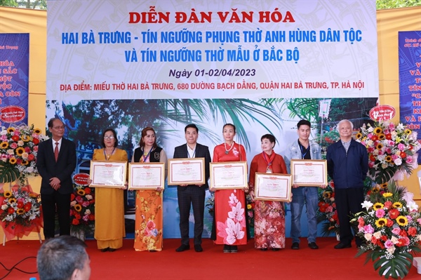 Tại diễn đàn, Viện trưởng Viện Phát triển Văn hóa Dân tộc Trần Văn Nam nhấn mạnh: Từ truyền thống tri ân anh hùng dân tộc đến các thực hành tín ngưỡng của cộng đồng người Việt là cả một hành trình văn hóa cần được tìm hiểu, giải mã, đem đến những nhận diện giá trị văn hóa, thậm chí nhận diện cả những hạn chế, tiêu cực để kịp thời ngăn chặn, điều chỉnh cho đúng hướng, phục vụ đời sống văn hóa xã hội hiện nay. Với trường hợp Hai Bà Trưng và các nữ tướng của hai bà, những năm gần đây đã được cộng đồng tri ân và tôn vinh vào hàng các chủ điện thờ Mẫu, được gắn với các hình thức sinh hoạt thờ Mẫu Tam Tứ phủ cũng như thực hành của tín ngưỡng thờ Mẫu của người Việt nói chung. Những biểu hiện văn hóa này cũng chính là sự hiện tồn của thực trạng phát triển của thực hành tín ngưỡng thờ Mẫu của người Việt đã và đang diễn ra tại nhiều vùng quê trên phạm vi cả nước.